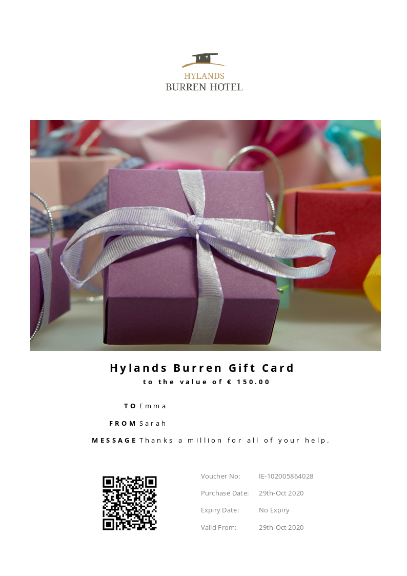 Hylands Burren Hotel allows you to purchase instantly printable gift vouchers, special offers and tickets using the Voucher Connect platform.